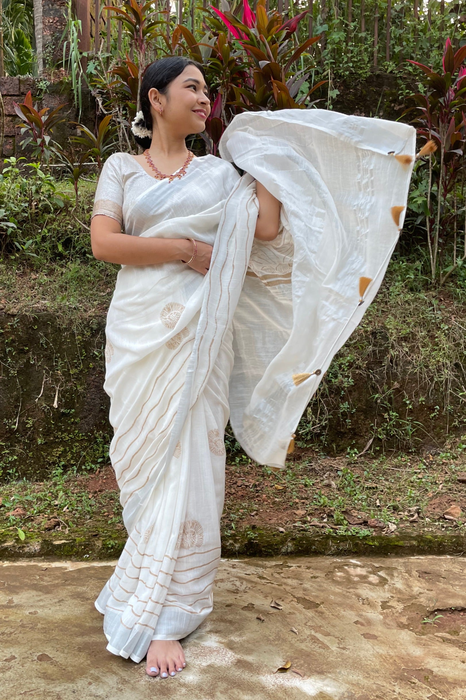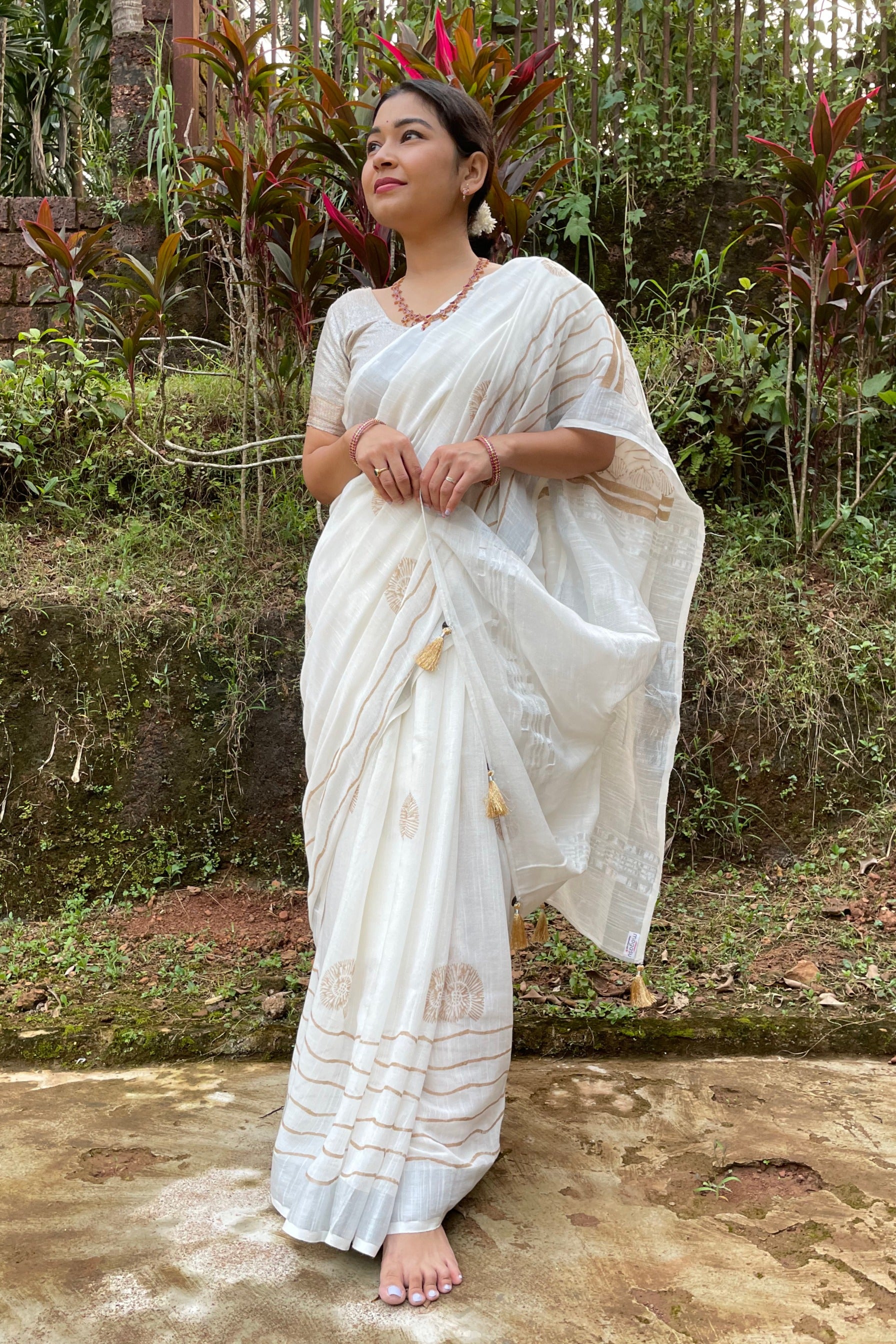 Linen fabric is light, feels good on skin and is considered as a premium fabric. This saree will be perfect for the hot Indian summers.