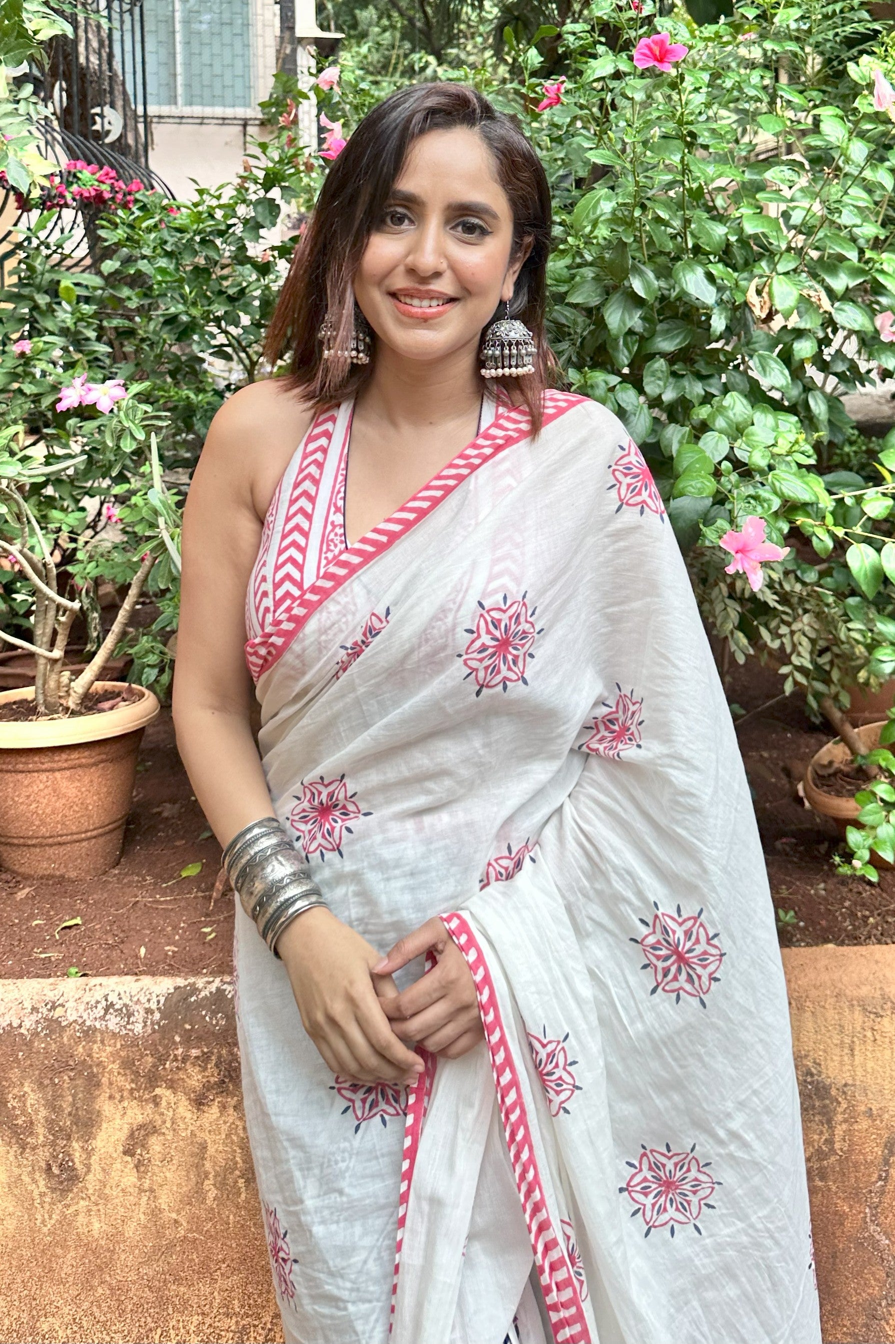 Do expect colour bleeding during the first few washes. Avoid soaking the saree. Wash separately and line dry in the shade. Iron at low temperatures in reverse. Please check out our blogs for more details on wash care.