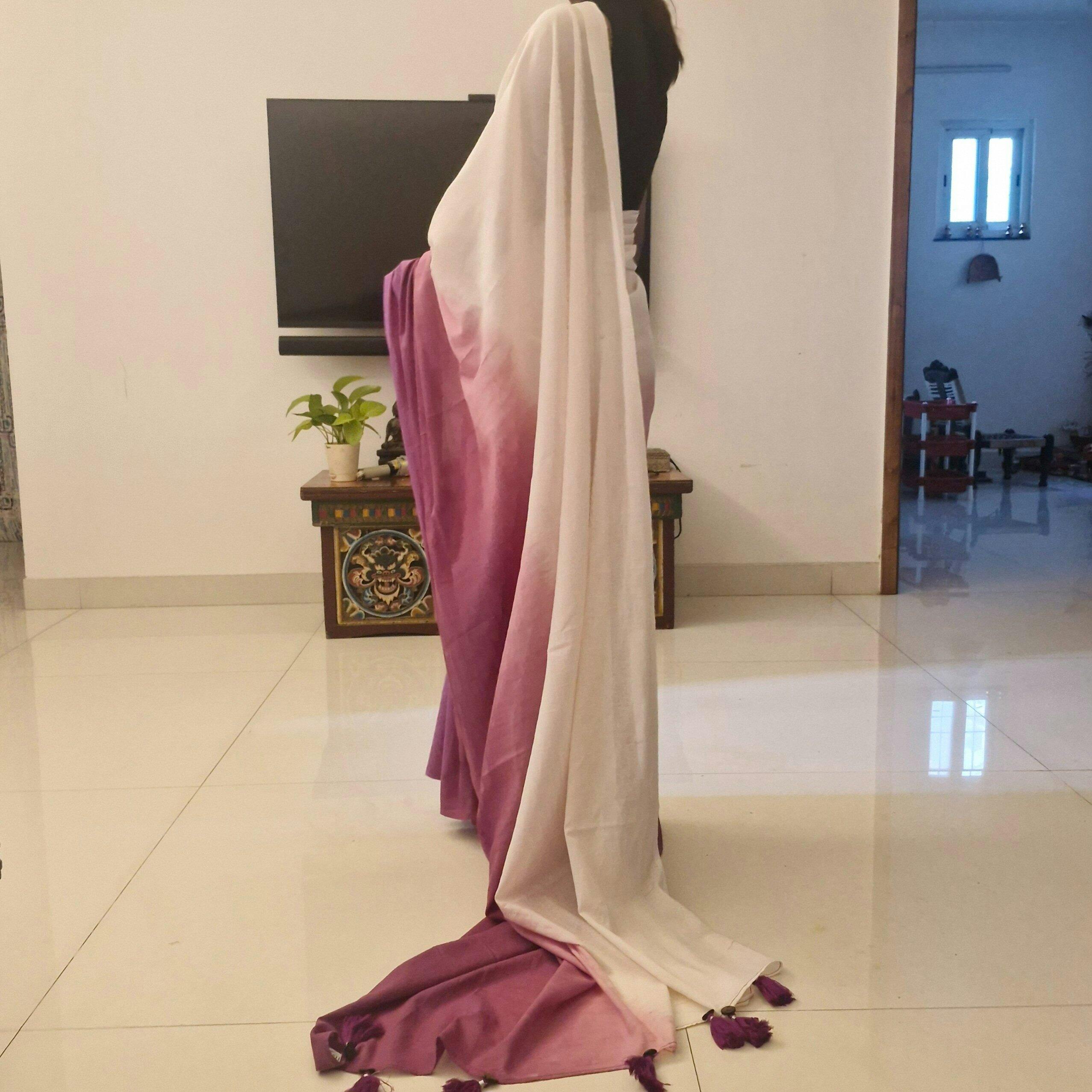 Archana Kadam This is my first purchase from mogasu. I discovered this brand thru a reel and have always wanted to try one out. This saree has a beautiful ombre effect and is genuinely super soft. Also the delivery was much faster than expected(5 days). In the order i received a super cute tote bag with handwritten note and some seeds to plant. This was such a nice touch and im sure I'll be ordering again ❤️:))