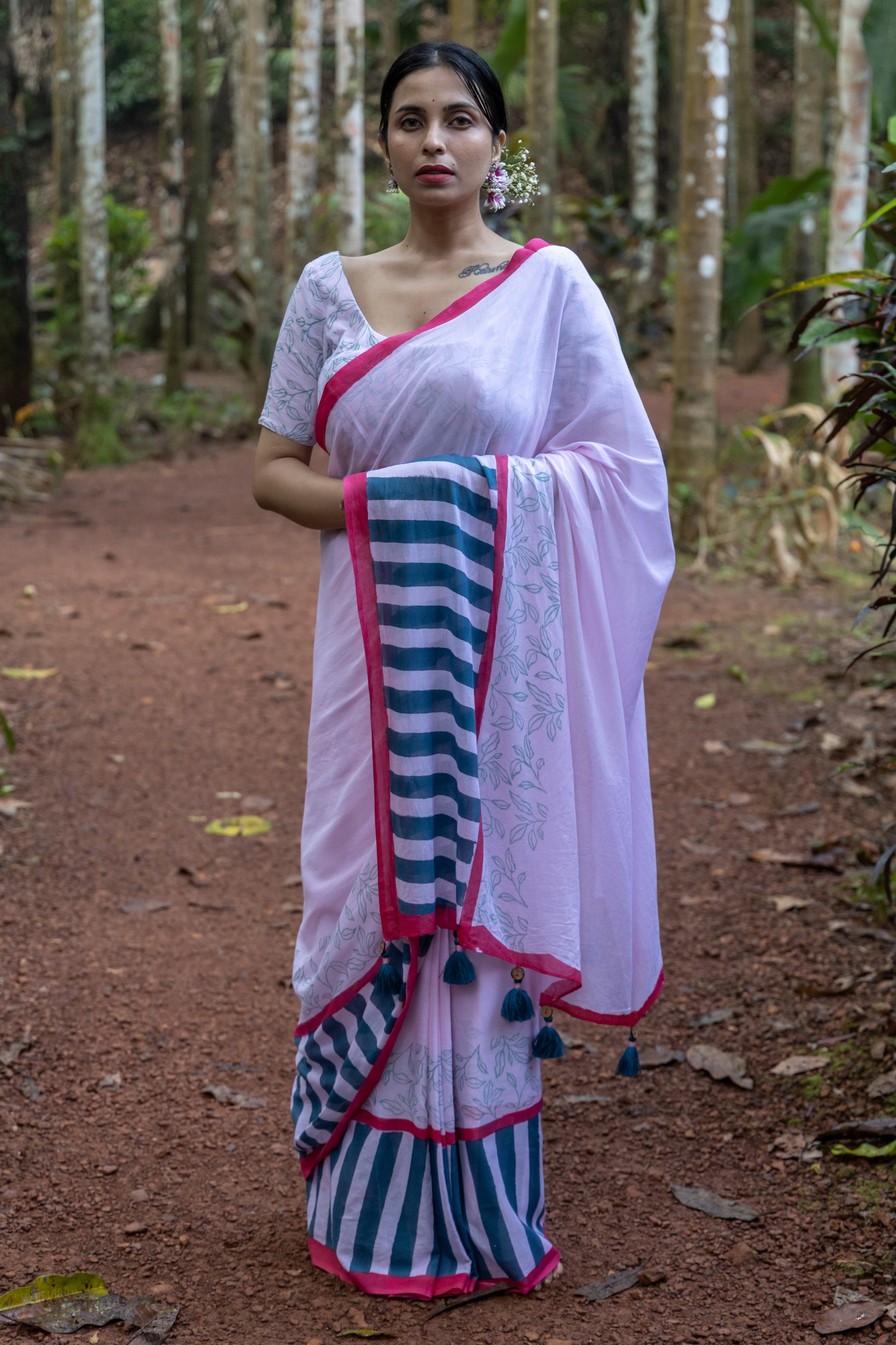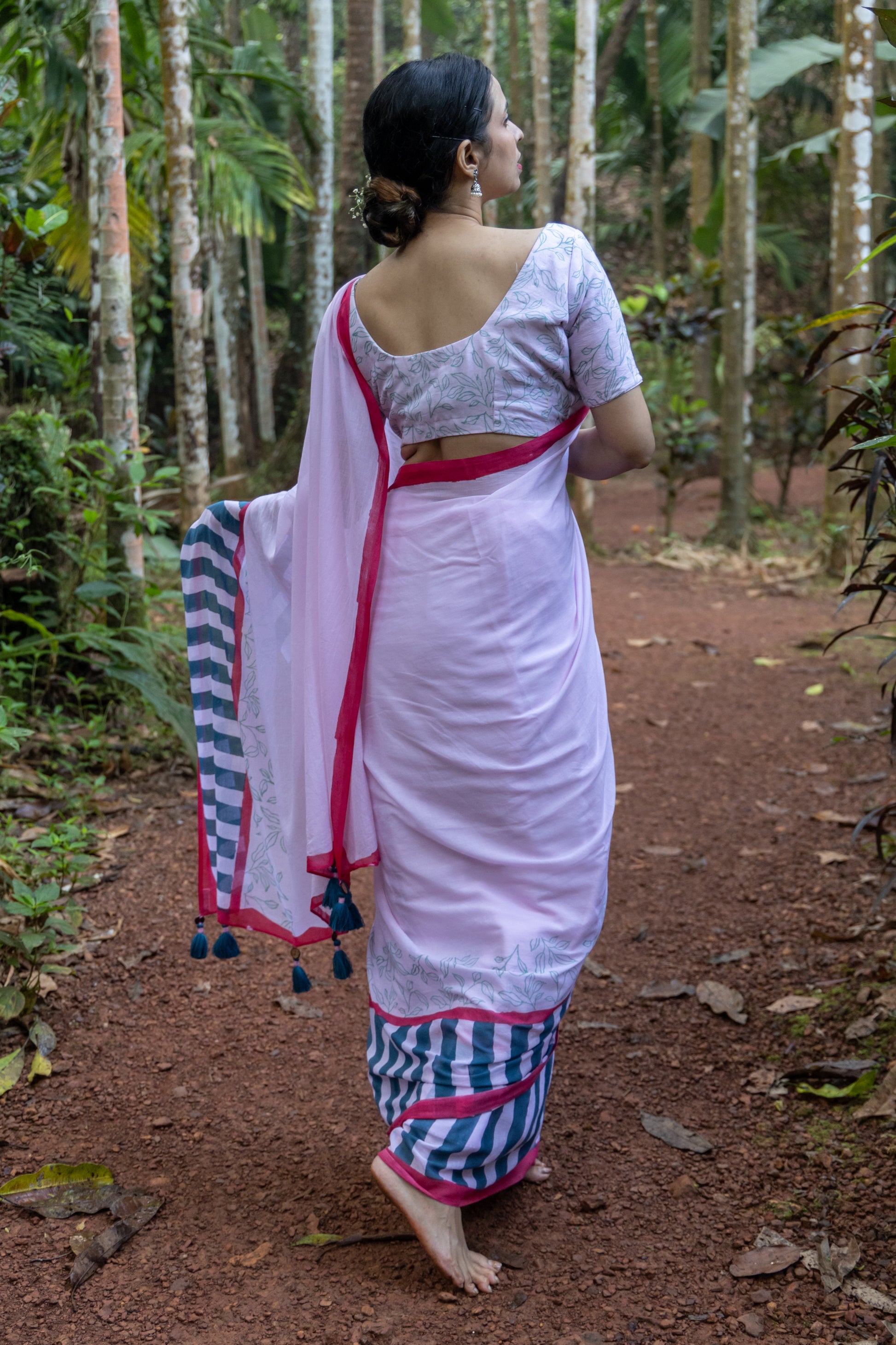 It is such a soft saree with a catchy print , border and awesome baby pink colour. I just cant wait to drape it ! Thank you so much Mogasu !