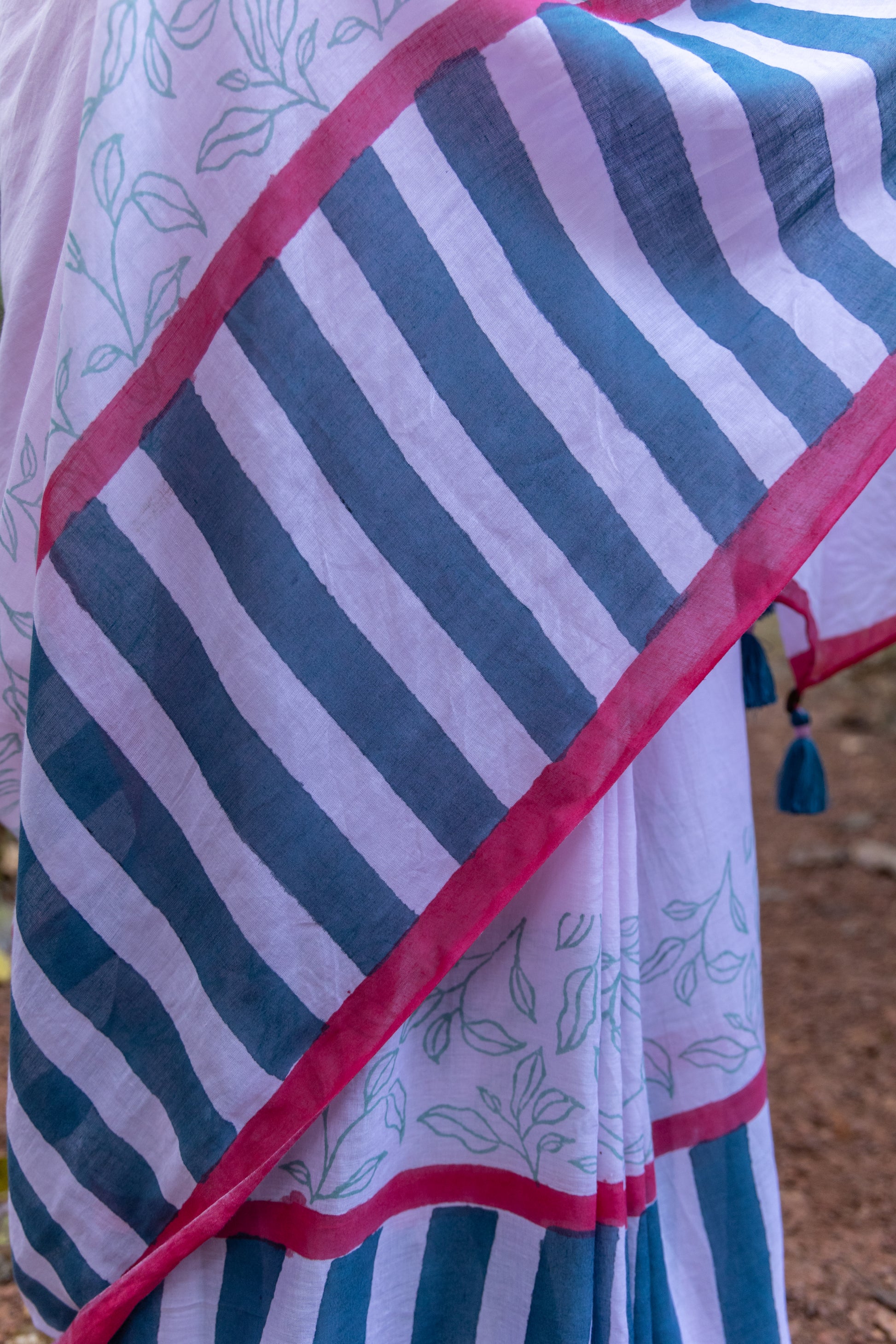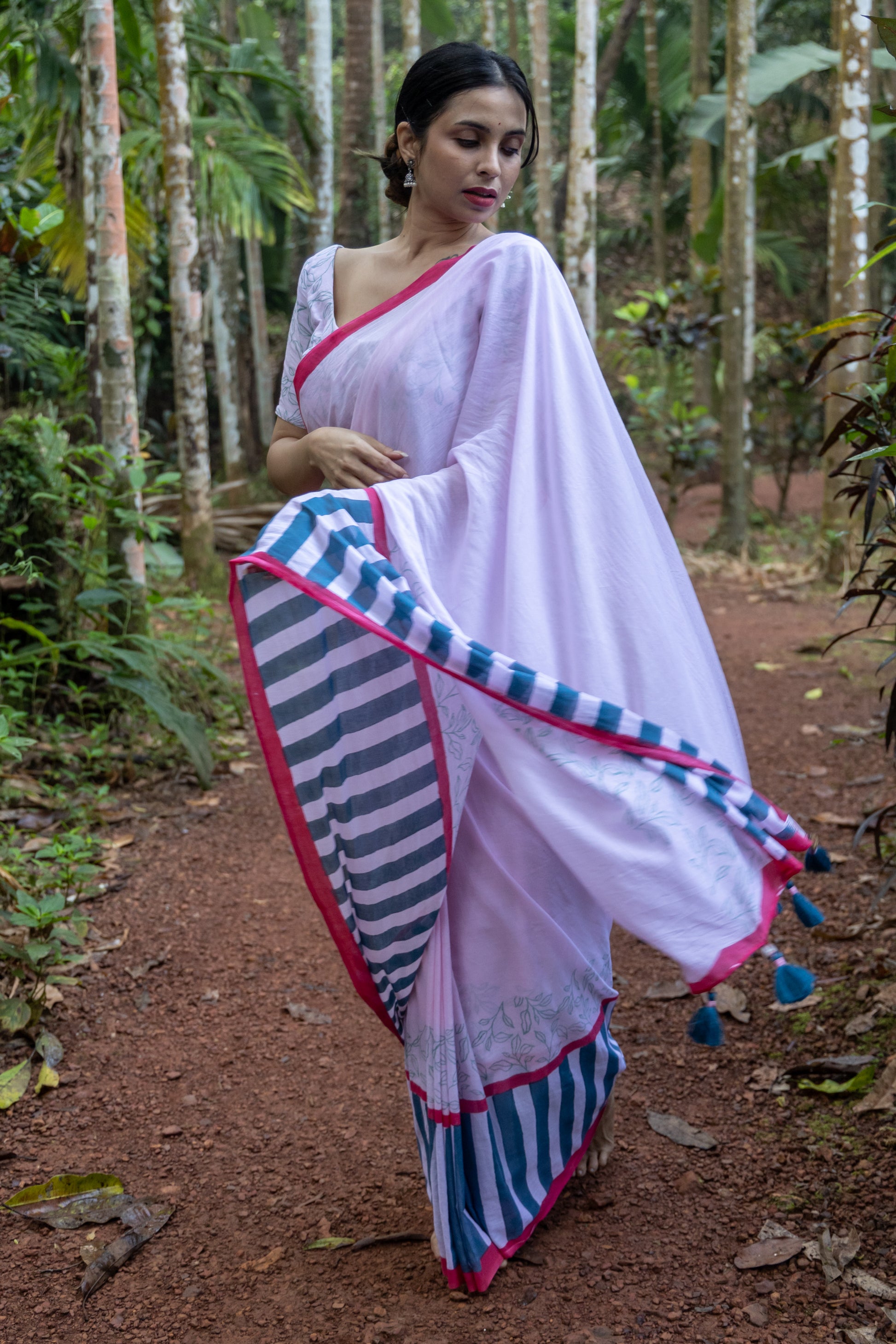 Blessed with abundant nature, Goa’s forests feature plants of various shapes and sizes. Paana - Konkani for leaves - is a humble attempt to capture the intricate patterns of the leaves and twigs of Goa’s forests. The saree combines a minimal look with fresh colours and is available in fine quality chanderi silk and light-weight mul cotton.