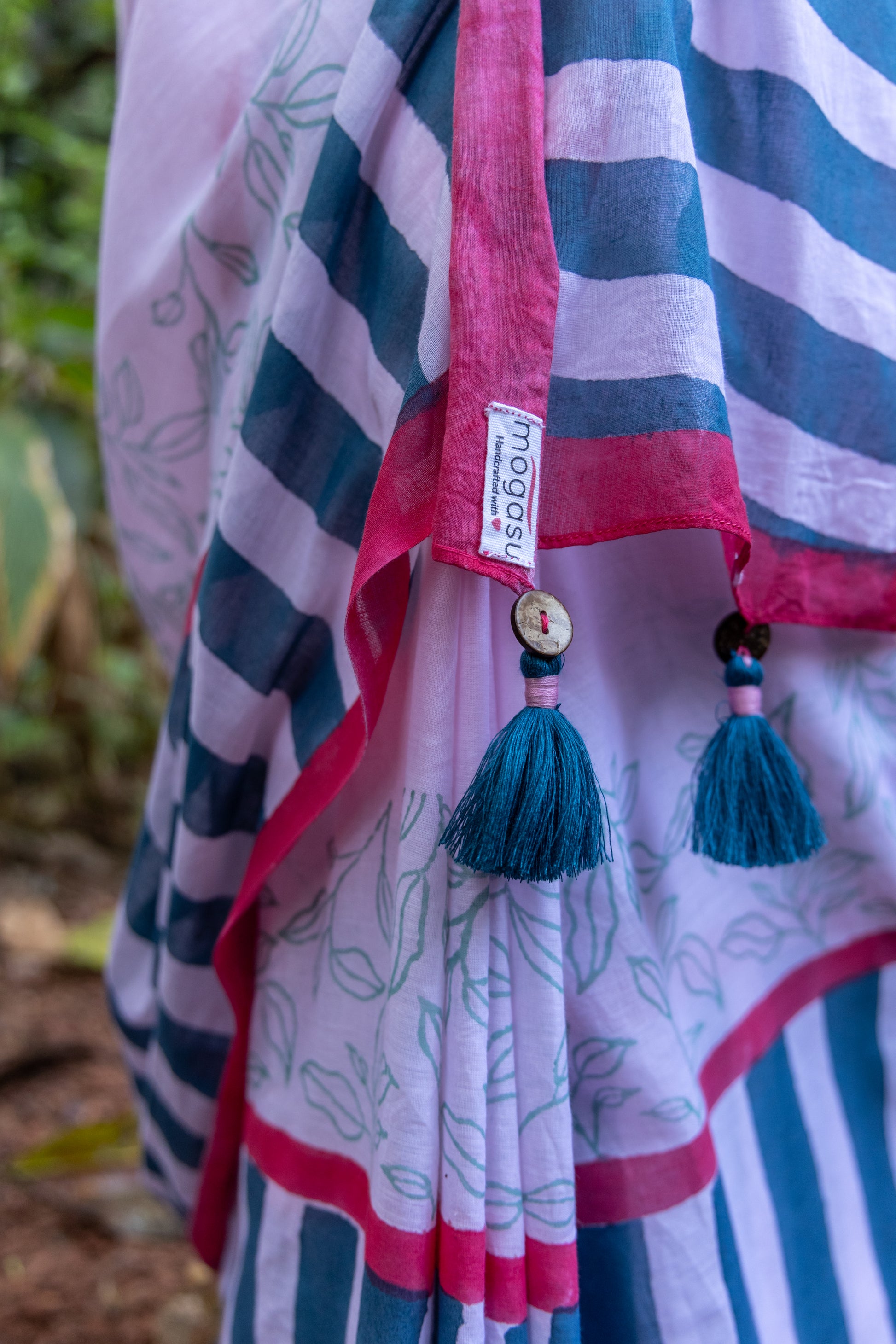 At Mogasu, apparel is hand dyed and hand blocked printed by skillful artisans with love and precision. You might notice some imperfections - a testimony to the 100% original hand printing techniques. The colours might slightly differ due to lighting and photography.