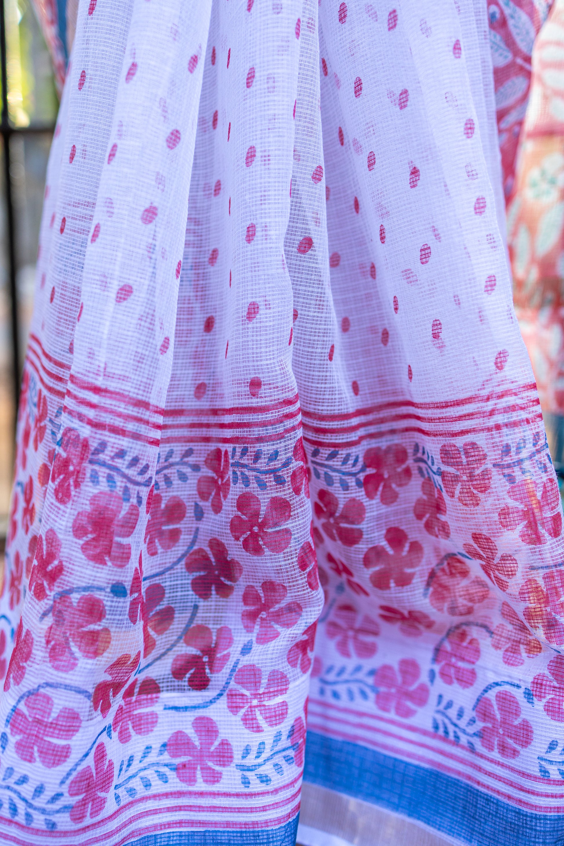 The Kota Doria sarees should be dry cleaned only. Iron at low temperature