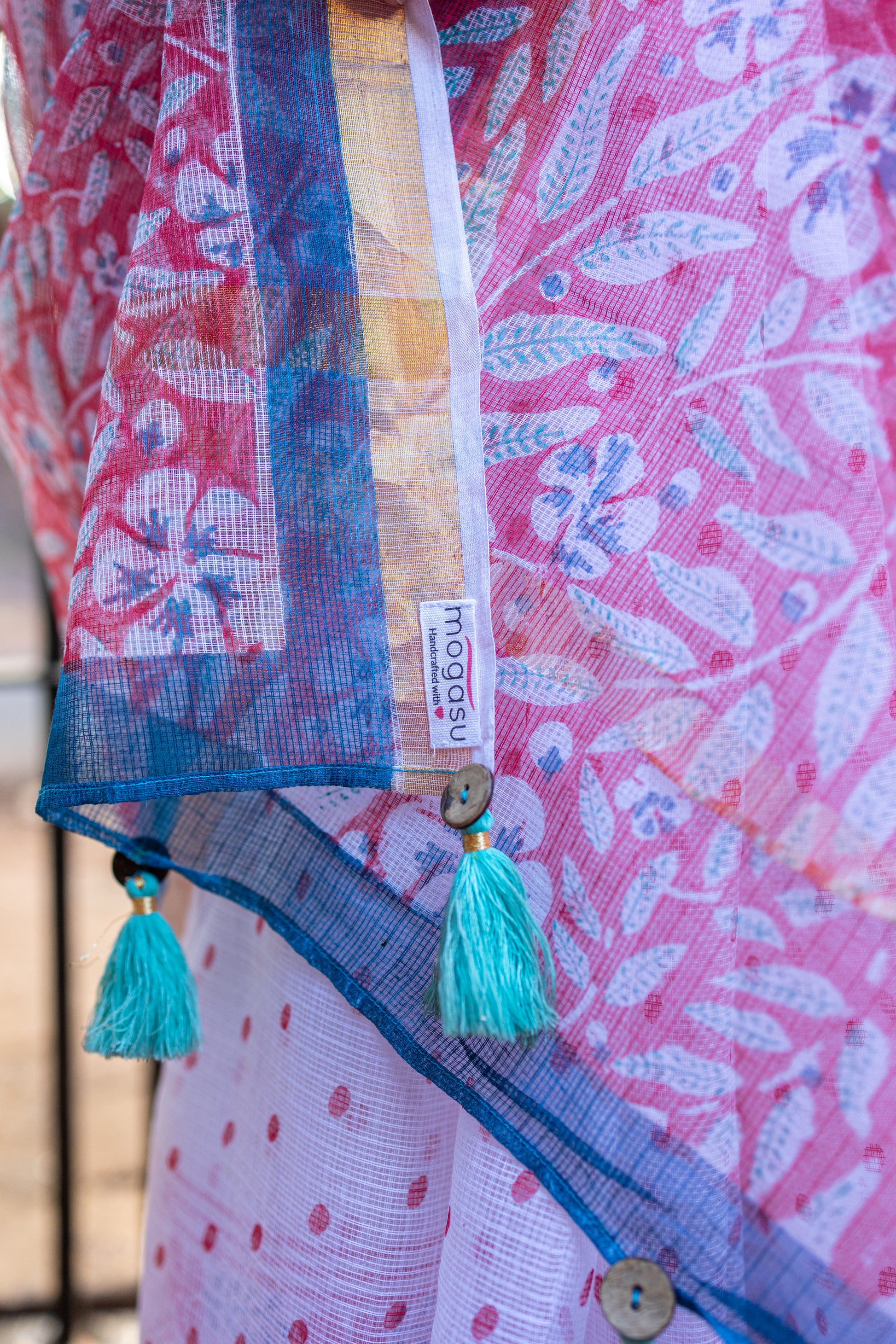 At Mogasu, apparel is hand dyed and hand blocked printed by skillful artisans with love and precision. You might notice some imperfections - a testimony to the 100% original hand printing techniques. The colours might slightly differ due to lighting and photography.